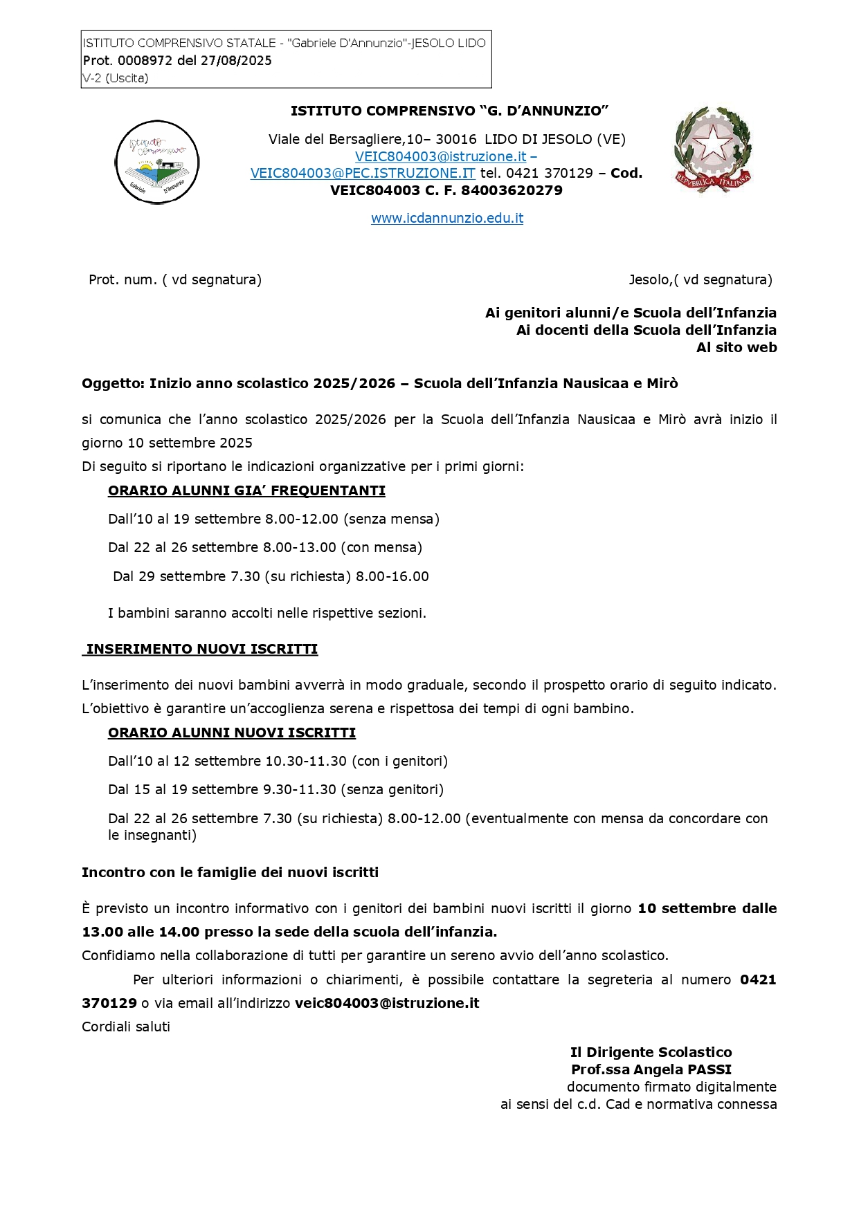 Circ. num. 480 - Scuola Primaria - Comunicazione orario attività didattiche dal 10/09/2025 al 12/09/2025